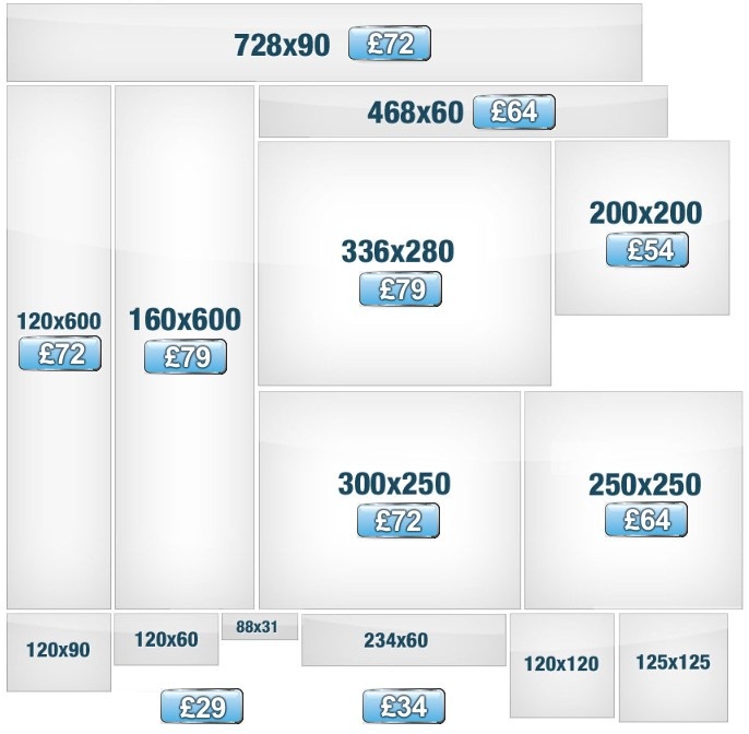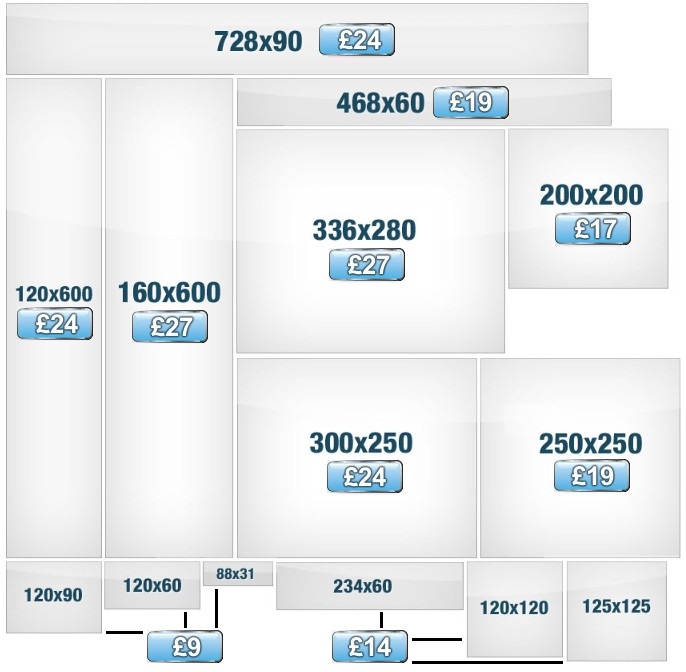 We offer one of the most competitive rates on the web with #1 customer service and high quality, click-through driven designs. Our banners are priced based on size. Starting from just £19 for static buttons to £79 for larger animated banners. Non-standard sizes are priced on request.